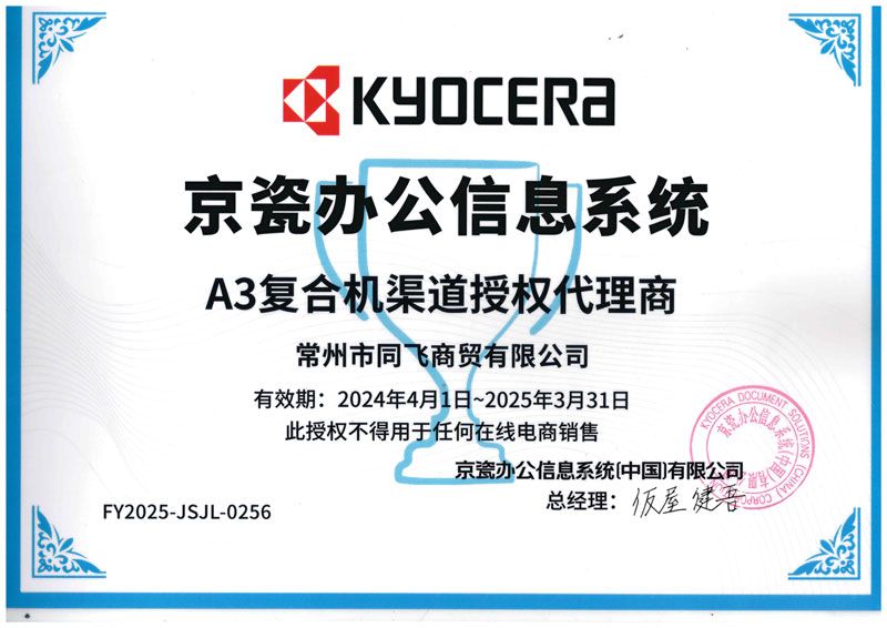 公司取得了日本京瓷復印機、打印機,映美針式打印機、天威耗材、安興紙業(yè)等眾多知名品牌常州地區(qū)代理權。